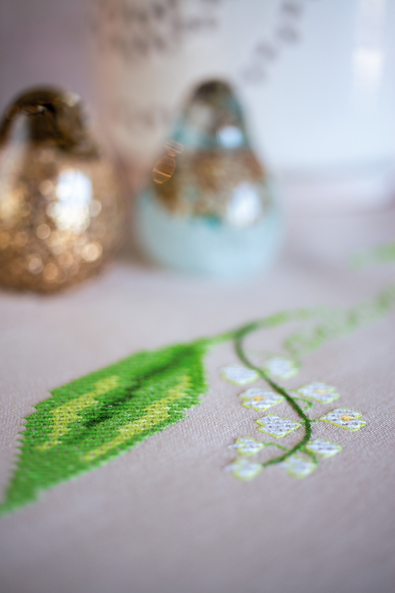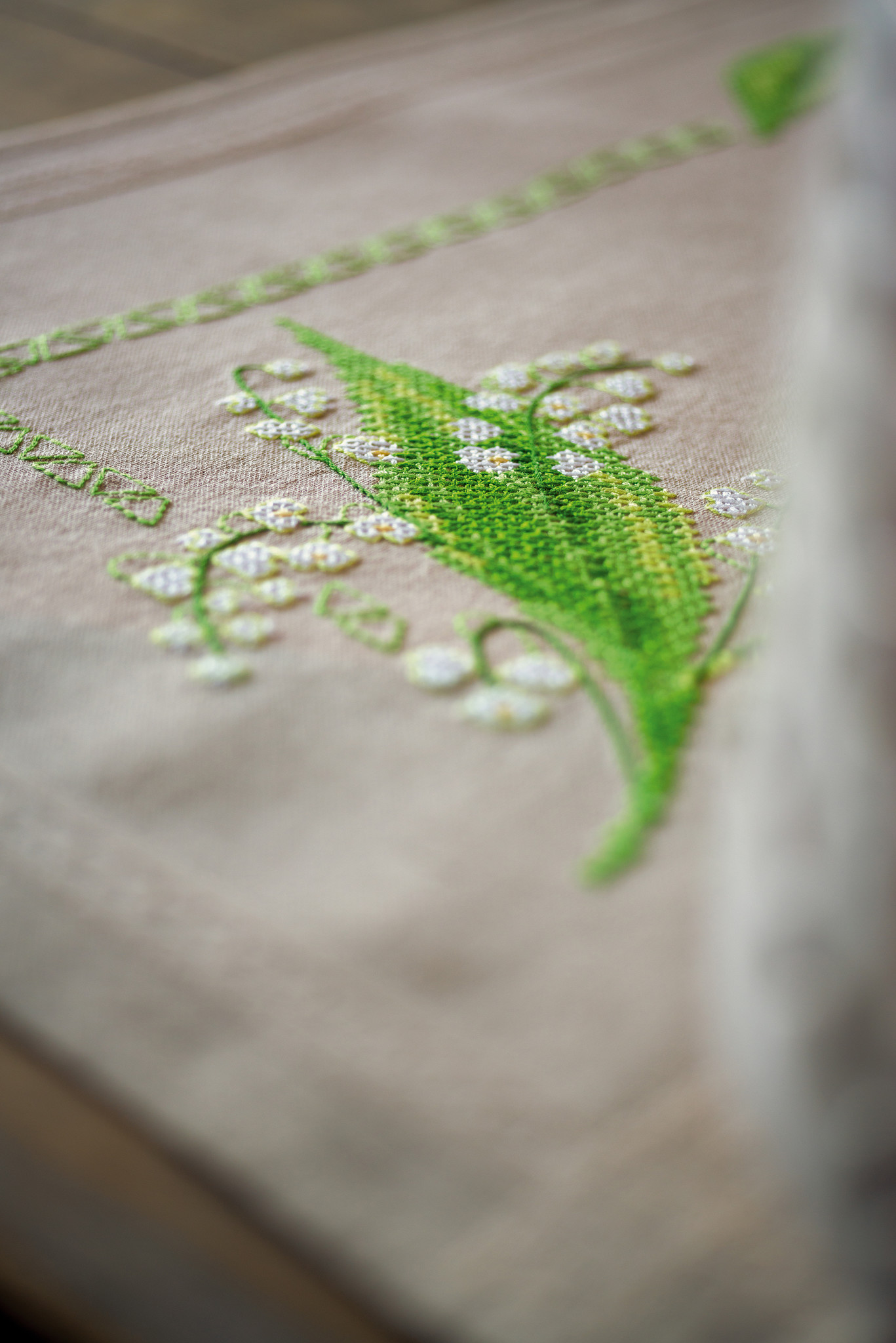 Bedrukte loper met ingeweven boord, Borduurstof: 100% katoen, Garen: 100% katoen DMC, Garenkaartje, Werkwijze in 8 talen, Vergroot patroon, Naald, Foto, Uitwasbare verf, Geconfectioneerd, ca. 40 x 100 cm / 16" x 40", Leeftijdscategorie: vanaf 15 jaar, Ste Lees meer