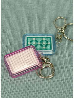 Deze sleutelhanger met ring, is geschikt om een stukje geborduurde stof in te zetten. 44 x 34 mm rechthoekig. Excl. patroon.