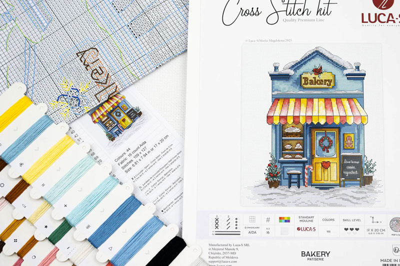 Compleet pakket met voorgesorteerde borduurgarens. Inclusief de benodigde borduurstof, garens, patroon, naald en beschrijving.