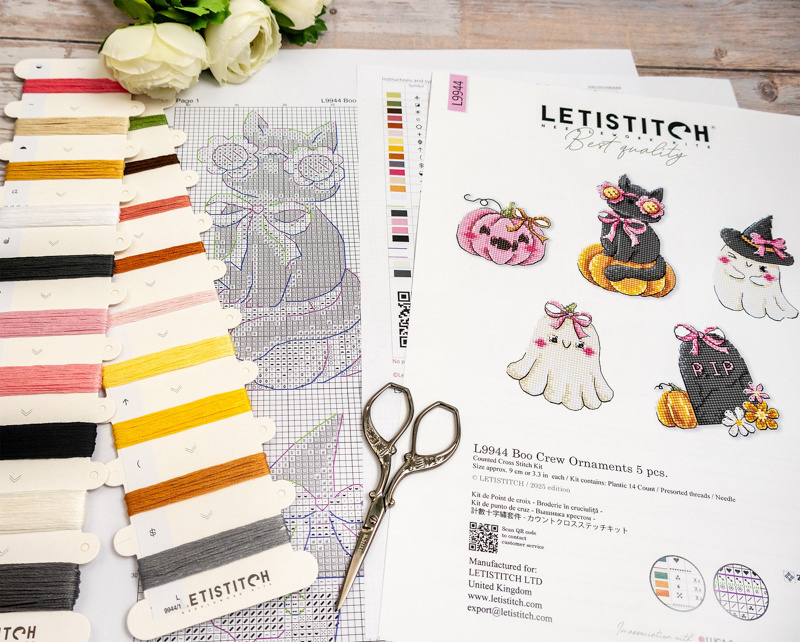 Borduurpakket Boo Crew Ornamentjes 5 stuks - Leti Stitch