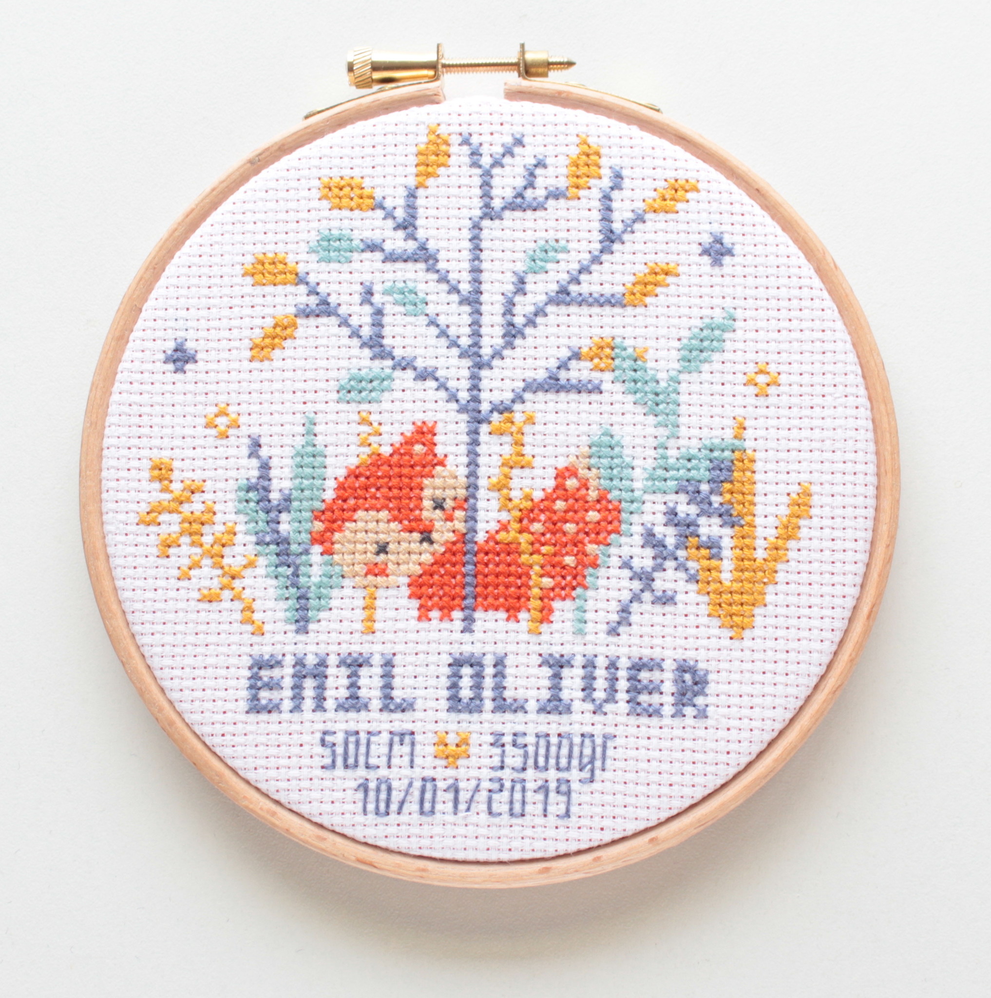 Borduurpakket Geboortetegel Vos - Stitchonomy