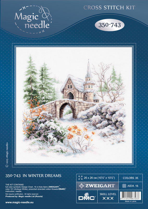 Compleet pakket met voorgesorteerde borduurgarens. Inclusief de benodigde borduurstof, garens, patroon, naald en beschrijving.