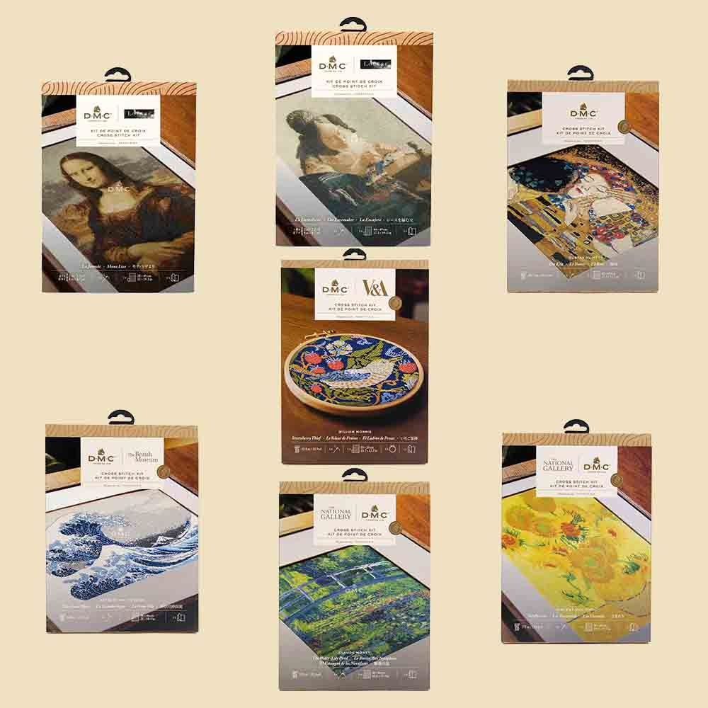 De borduurpakketten van DMC staan bekend om hun aantrekkelijke designs en uitstekende kwaliteit. Voor de nieuwste borduurkits is DMC een samenwerking aangegaan met het verschillende toonaangevende musea. Iconische kunstwerken uit de museumcollecties staan centraal in verschillende bijzondere pakketten.