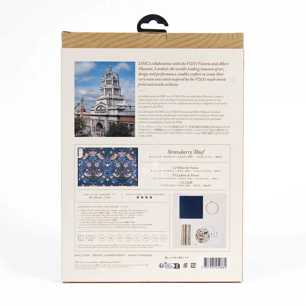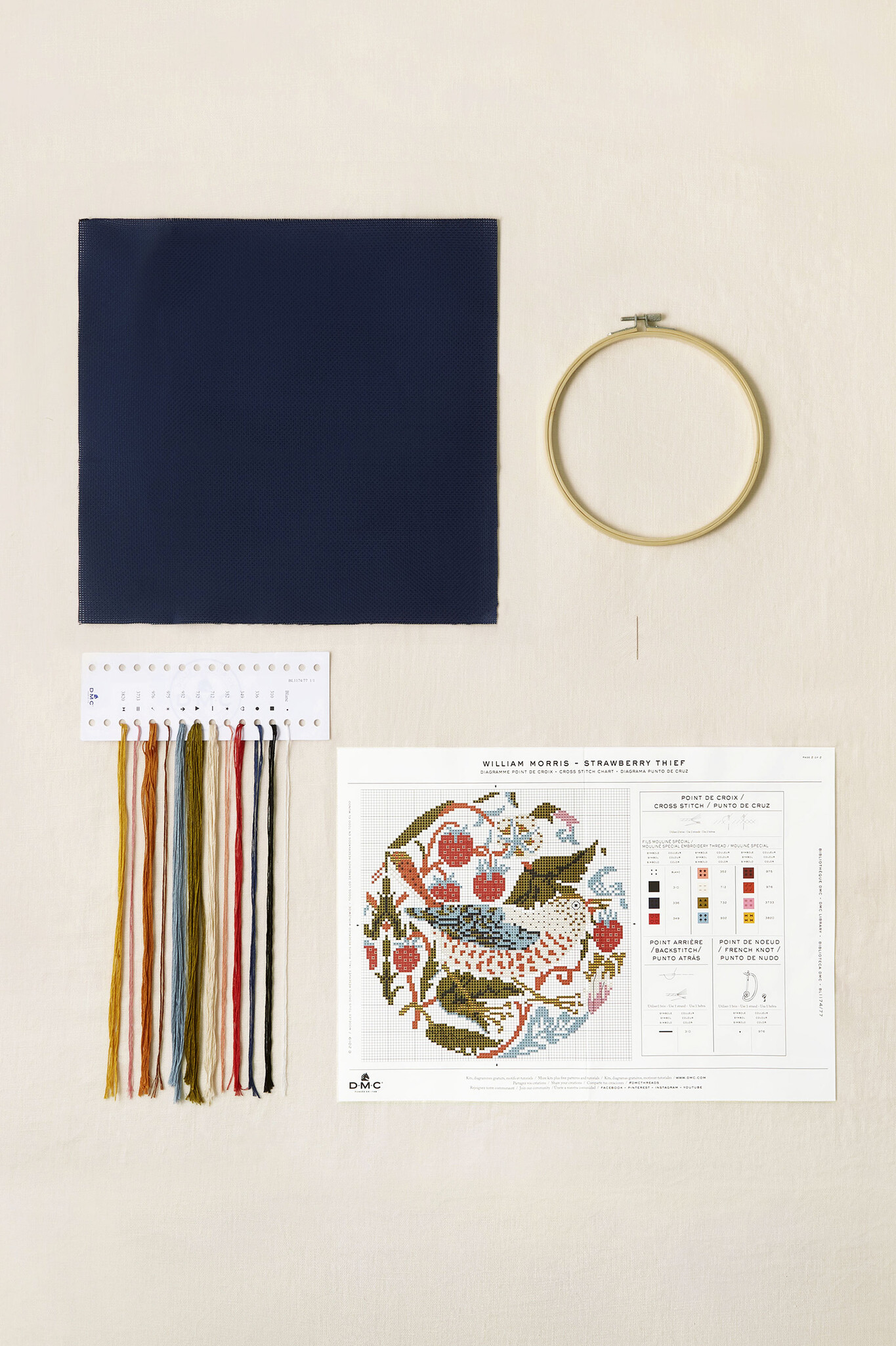 Deze borduurkit bevat alles wat u nodig hebt om een prachtig kruissteekborduurwerk te maken dat geïnspireerd is op de wereldberoemde Strawberry Thief van William Morris. Dit kunstwerk komt uit de collectie van The Victoria and Albert Museum in Londen. Het complete pakket bestaat uit de volgende onderdelen: