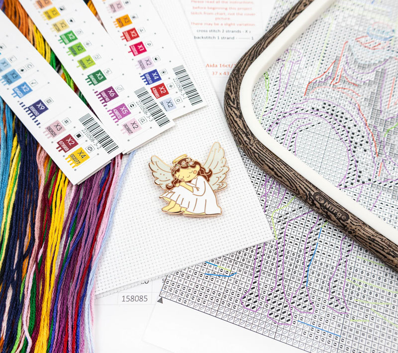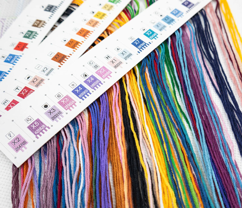Compleet pakket met voorgesorteerde borduurgarens. Inclusief de benodigde borduurstof, garens, patroon, naald en beschrijving. Lees meer