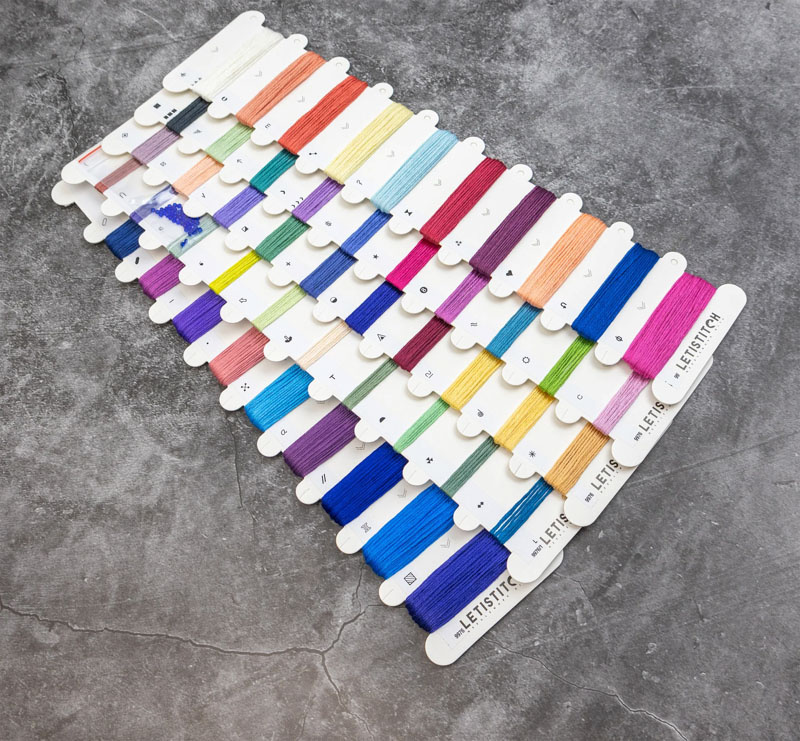Compleet pakket met voorgesorteerde borduurgarens. Inclusief de benodigde borduurstof, garens, patroon, naald en beschrijving. Lees meer