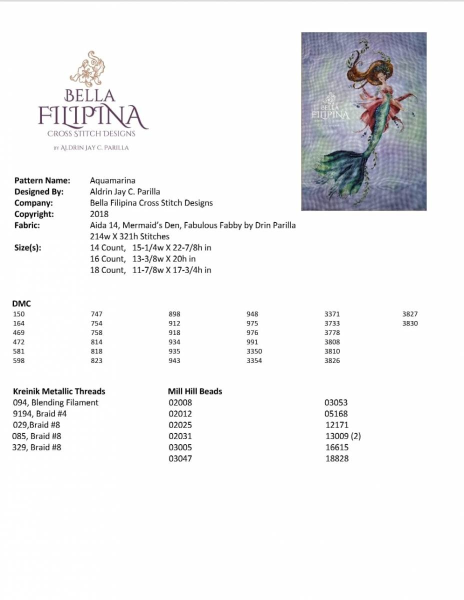 Borduurpatroon Aquamarina - Bella Filipina Designs