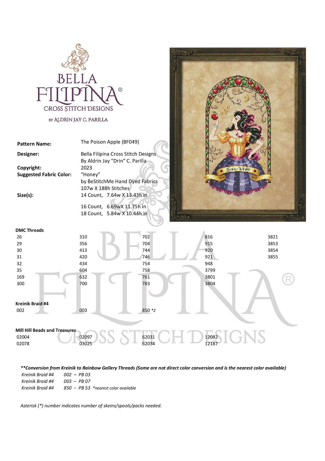 Bij de foto's is de materiaallijst te vinden, de speciale materialen zoals Kreinik en Mill Hill zijn ook apart verkrijgbaar als speciale materialenpakketje.