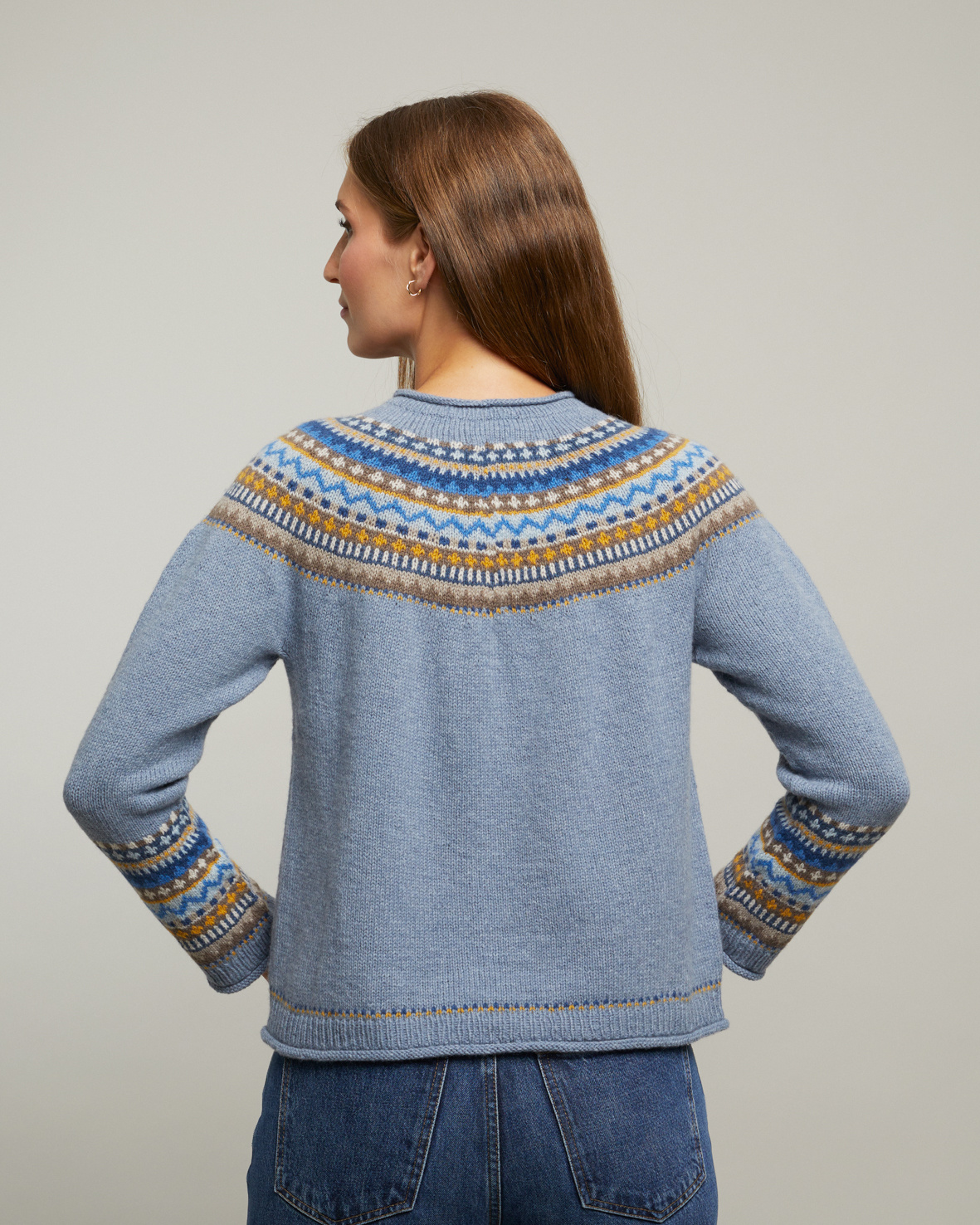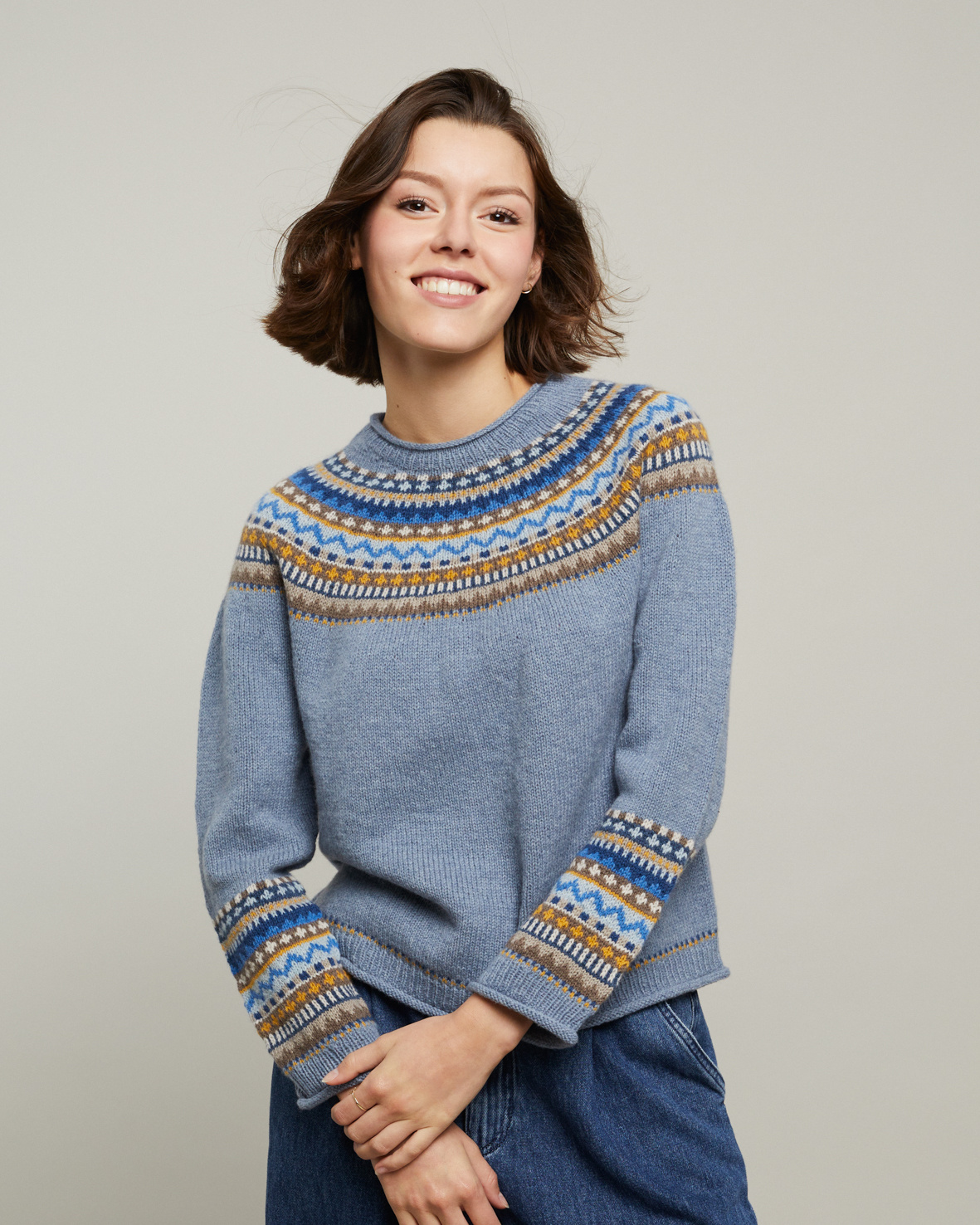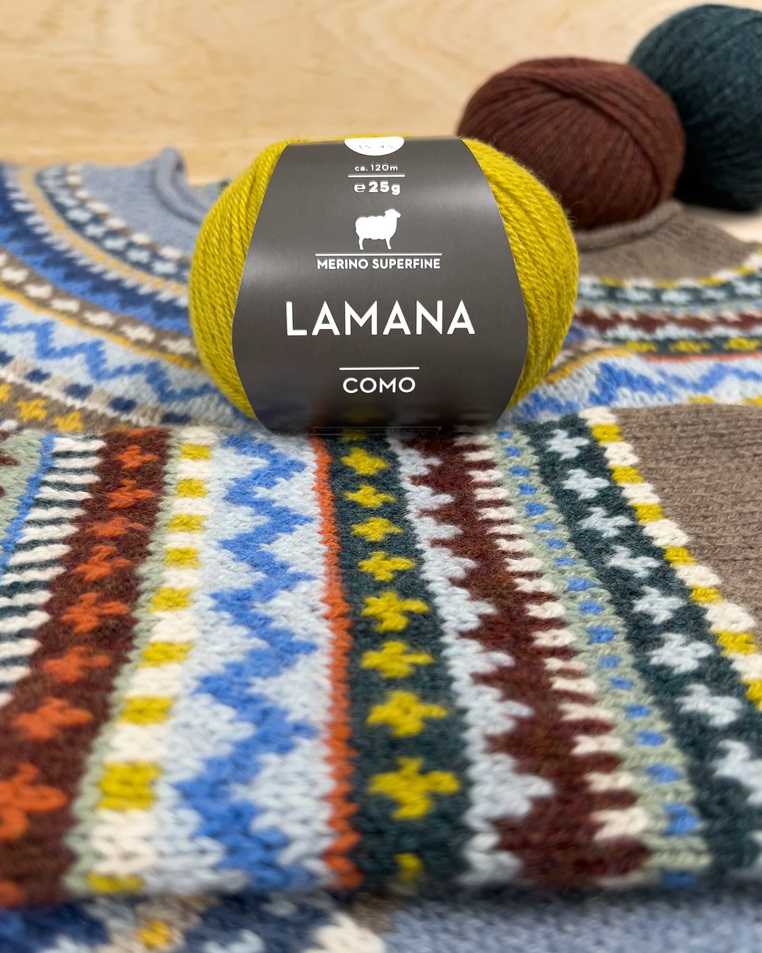 Breipakket voor deze Fair Isle trui model Cara van Lamana, met gratis breiboek no. 16, gebreid met 9 kleuren Como. Lees meer