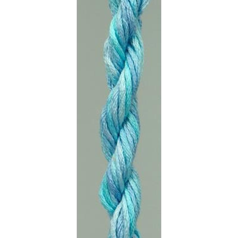 Een 12-draads natuurzijden borduurgaren, welke handmatig in overlopende kleuren zijn geverfd.