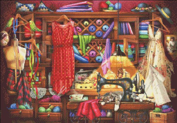 Op 10-draads handwerkstof of aida 5,5 wordt dit 65 x 45,4 cm groot.