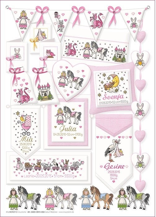 Vouwblad 145x210 steken. Kleurenpatroon met 20 kleuren DMC/Anchor. Te borduren als compleet patroon of gebruik onderdelen van het patroon voor kussens, kruidenzakjes, badstof, randen, kaarten, banners, theedoeken enz. Kruissteek en stiksteek. Nederlandse beschrijving en alfabet.