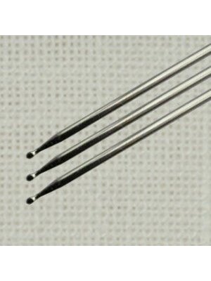 Deze magische bolletjesnaald heeft een bolletje in plaats van een (stompe) punt. Hierdoor glijdt de naald gemakkelijk in de gaatjes van je stof en prik je minder snel in je garen of stof. De meest verkochte dikte is nummer 37, geschikt voor aida 7 of 8 of