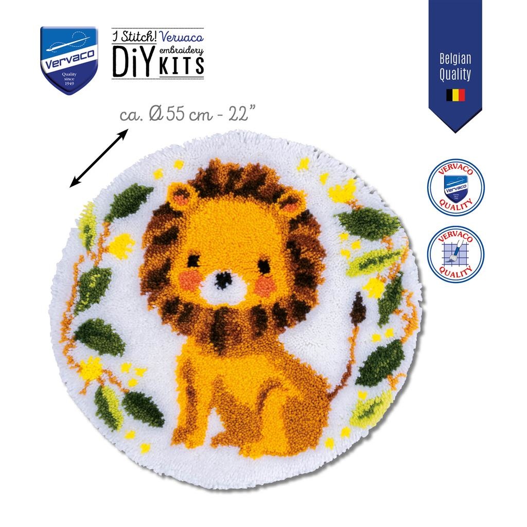 Knoop kit, Handgeschilderd grof mono-stramien: 52% katoen, 48% polyester, Garen: 100% acryl, 18 steken/10 cm, Werkwijze in 8 talen, Foto, Knoophaak, Met tapijtlint, ca. 55 x 55 cm / 22" x 22", Leeftijdscategorie: vanaf 7 jaar, Steken: Knopen, Aantal kleuren: 13, Moeilijkheidsgraad: Gemakkelijk,