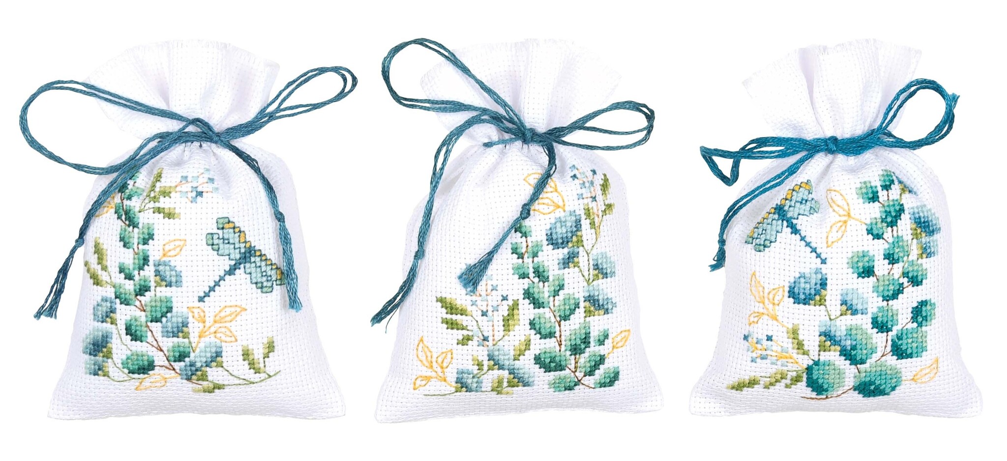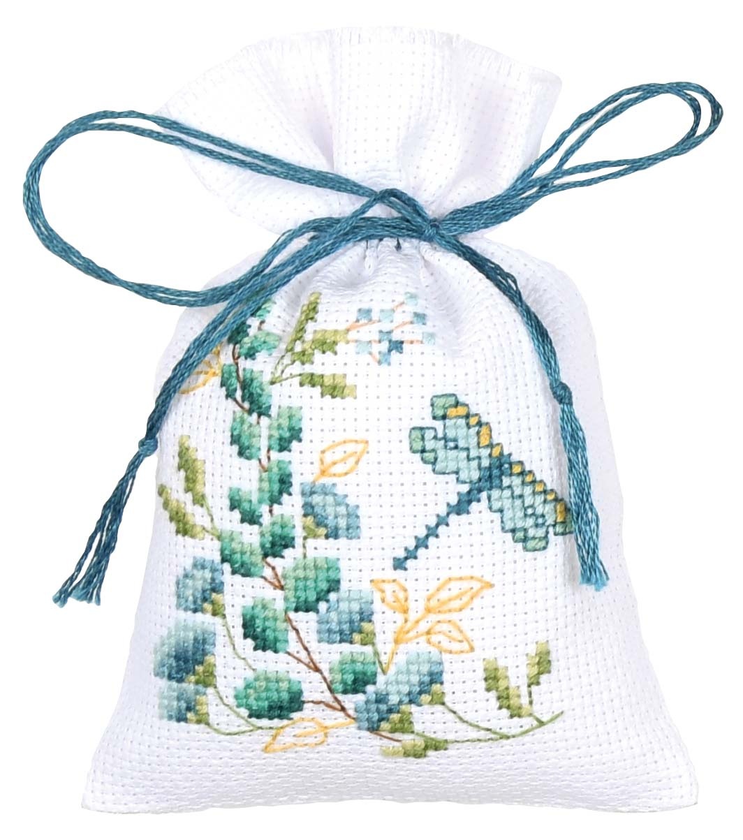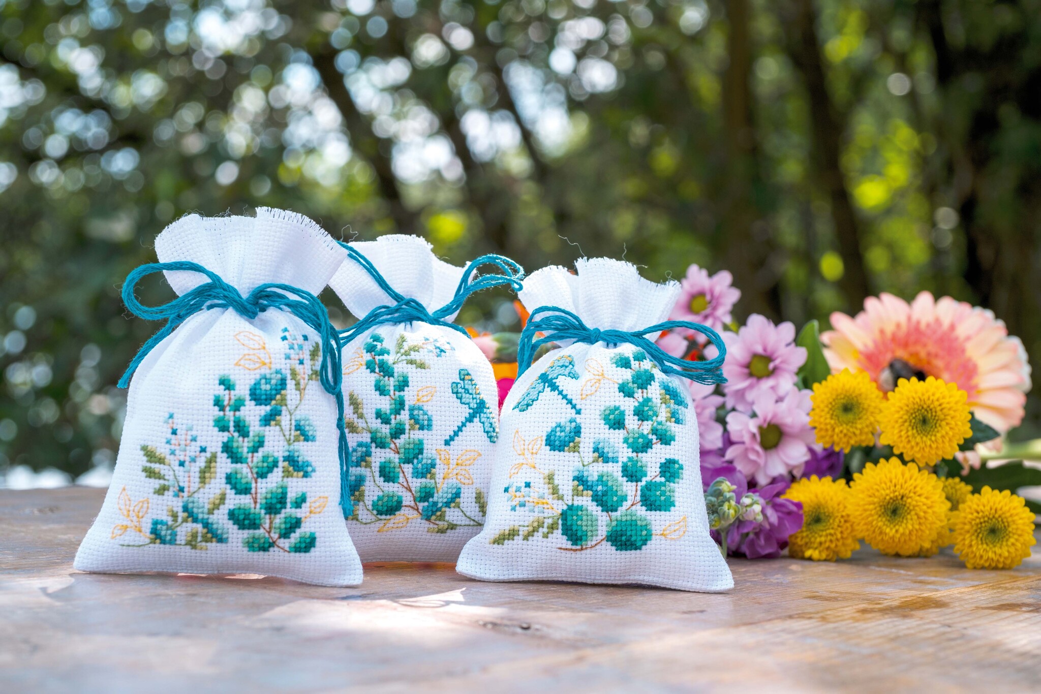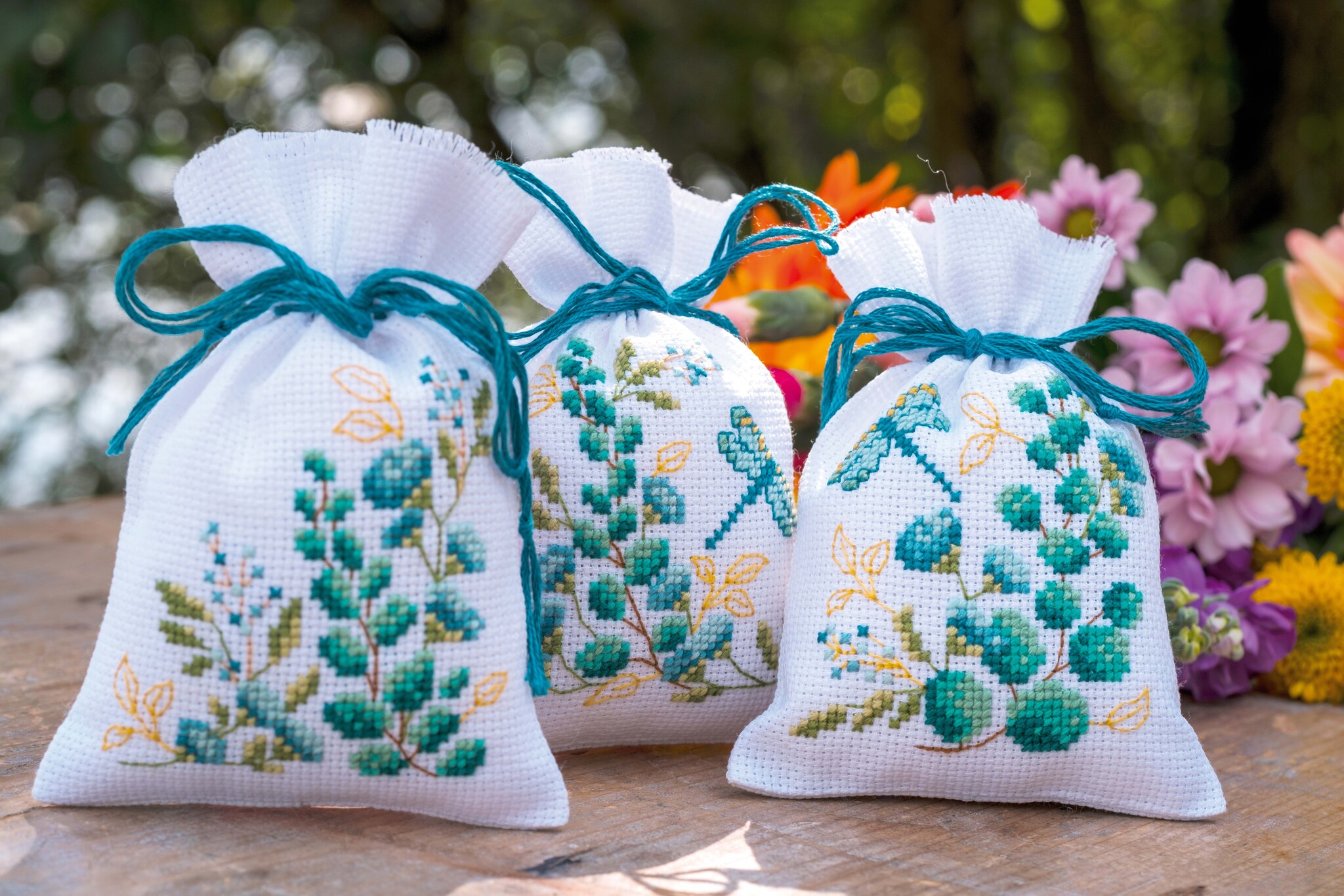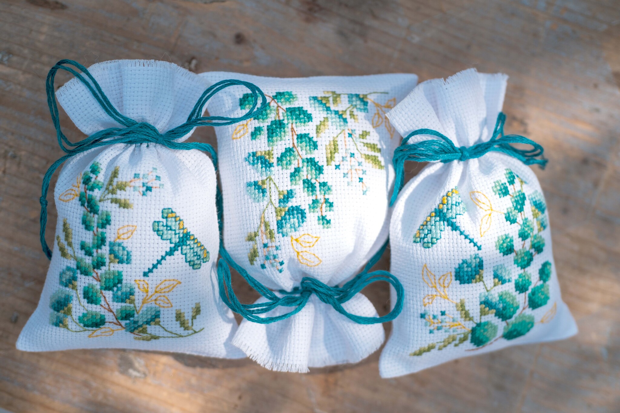 Telpakket met telpatroon, 3 half geconfectioneerde zakjes, Borduurstof: 100% katoen, Garen: 100% katoen DMC, Aida 7 steken/cm, Garenkaartje, Werkwijze in 8 talen, Vergroot telpatroon, Naald - Foto, Garen voor sluitingsdraad, ca. 8 x 12 cm / 3.2" x 4.8", L Lees meer