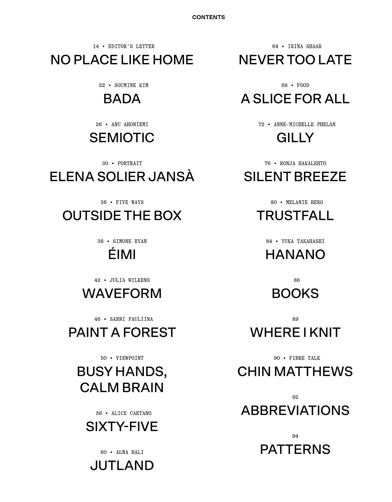 Designers in deze uitgave: Anu Ahoniemi, Alma Bali, Melanie Berg, Alice Caetano, Ronja Hakalehto, Soumine Kim, Sanni Pauliina, Anne-Michelle Phelan, Simone Ryan, Irina Shaar, Yuka Takahashi, Julia Wilkens.