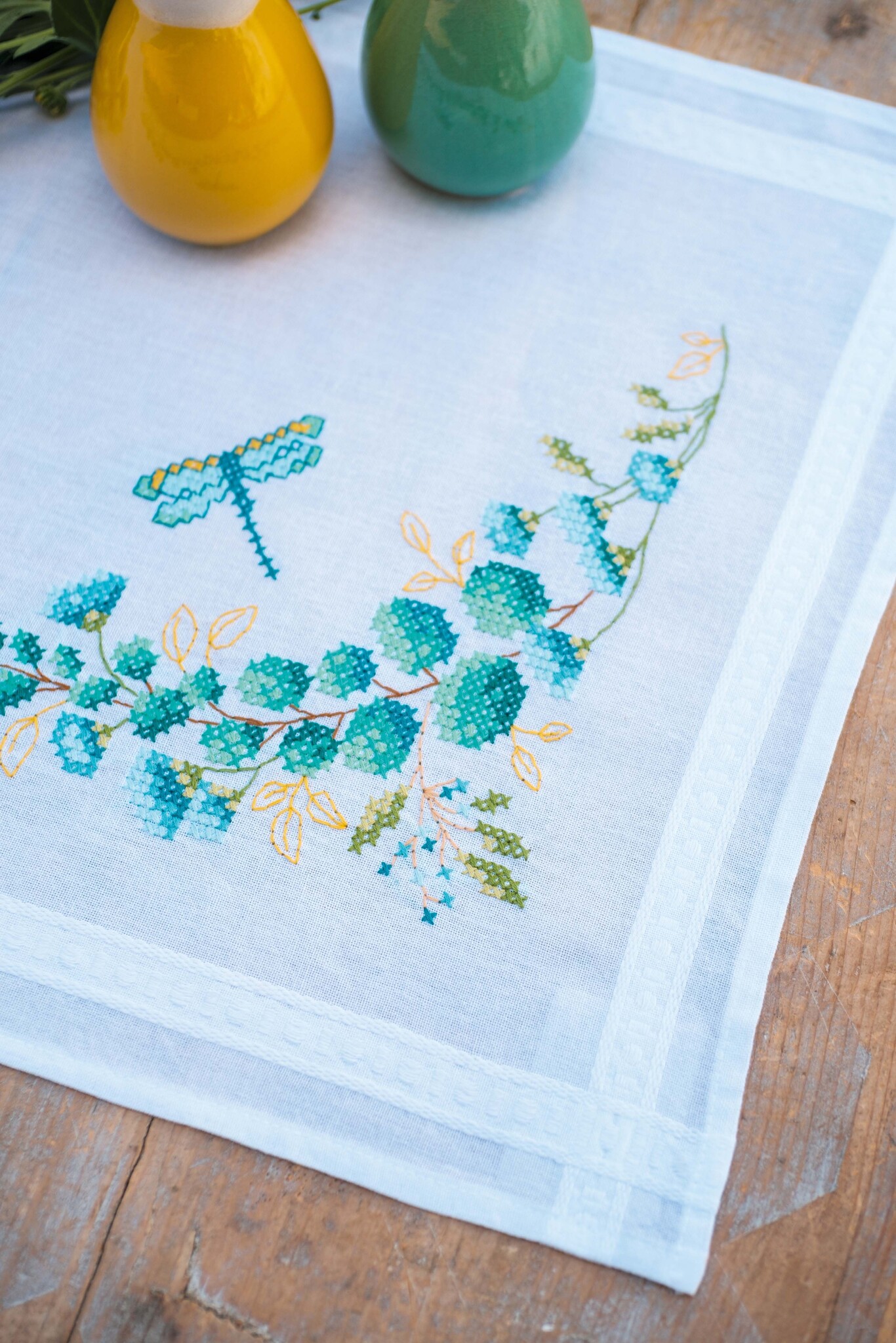 Creëer een prachtige tafelloper met dit complete borduurpakket Loper kit Eucalyptus van Vervaco. Het pakket bevat alles wat je nodig hebt om een elegante loper met eucalyptusmotief te borduren. Dankzij de voorbedrukte stof en duidelijke werkwijze in 8 talen is dit borduurproject geschikt voor zowel ervaren borduurders als enthousiaste hobbyisten vanaf 15 jaar.