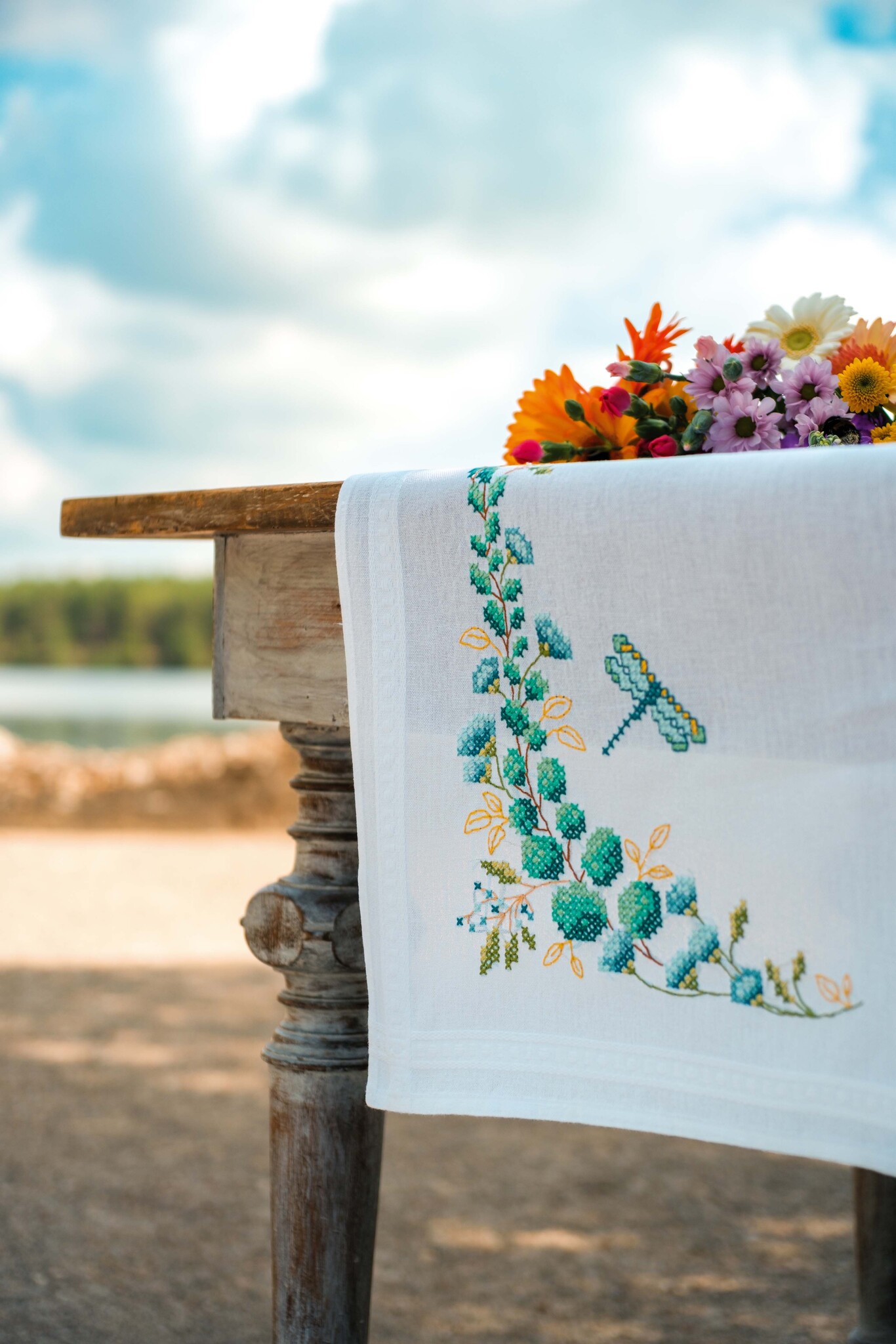 De loper is gemaakt van 100% katoen en heeft een afmeting van ca. 40 x 100 cm. In het pakket vind je hoogwaardige DMC borduurgarens, een vergroot patroon, naald en uitwasbare verf. Je borduurt met kruissteek en stiksteek in meerdere kleuren, waardoor het eindresultaat een sfeervolle en stijlvolle toevoeging is aan je interieur.