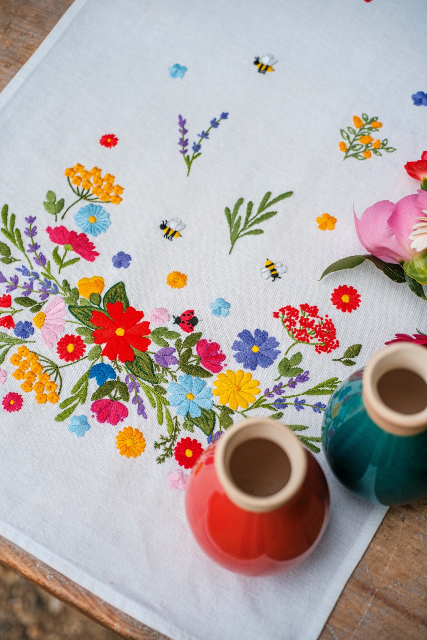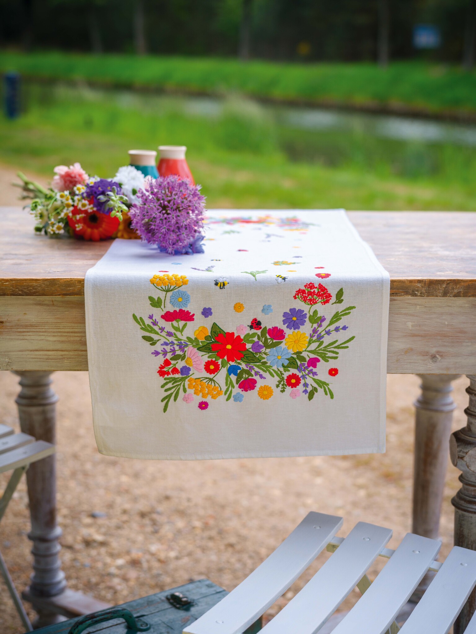 Bedrukt loper met omgezoomde boord, Borduurstof: 50% katoen, 50% linnen, Garen: 100% katoen DMC, Garenkaartje, Werkwijze in 8 talen, Vergroot patroon, Naald, Foto, Uitwasbare verf, Geconfectioneerd, ca. 35 x 95 cm / 14" x 38", Leeftijdscategorie: vanaf 15 jaar, Steken: Franse knoop, Lussensteek, Platsteek, Spansteek, Steelsteek, Aantal kleuren: 19, Moeilijkheidsgraad: Matig gemakkelijk,