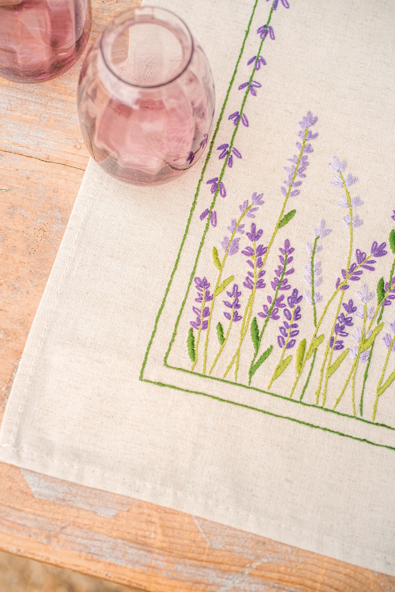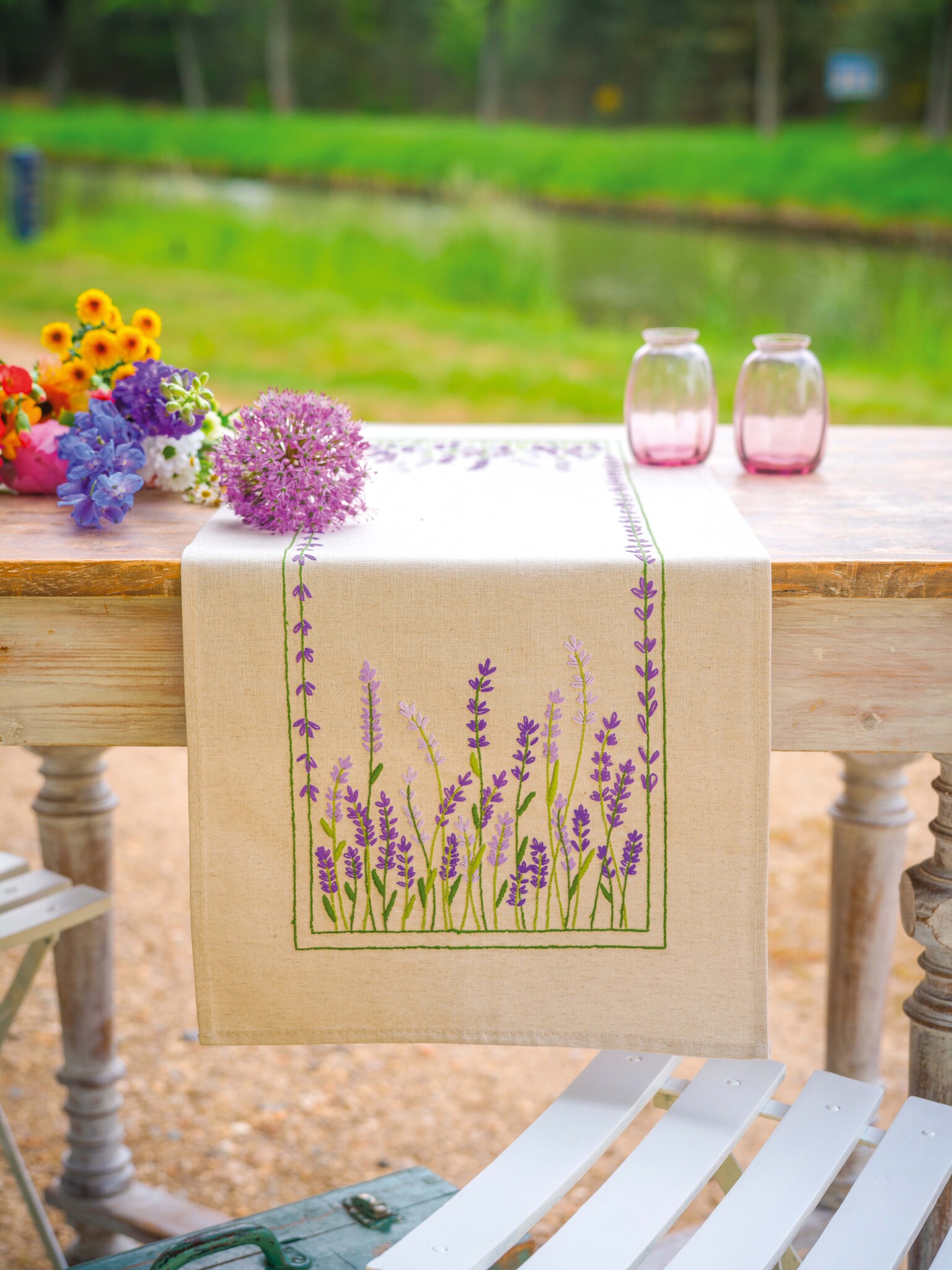 Bedrukt loper met omgezoomde boord, Borduurstof: 50% katoen, 50% linnen, Garen: 100% katoen DMC, Garenkaartje, Werkwijze in 8 talen, Vergroot patroon, Naald, Foto, Uitwasbare verf, Geconfectioneerd, ca. 35 x 95 cm / 14" x 38", Leeftijdscategorie: vanaf 15 Lees meer