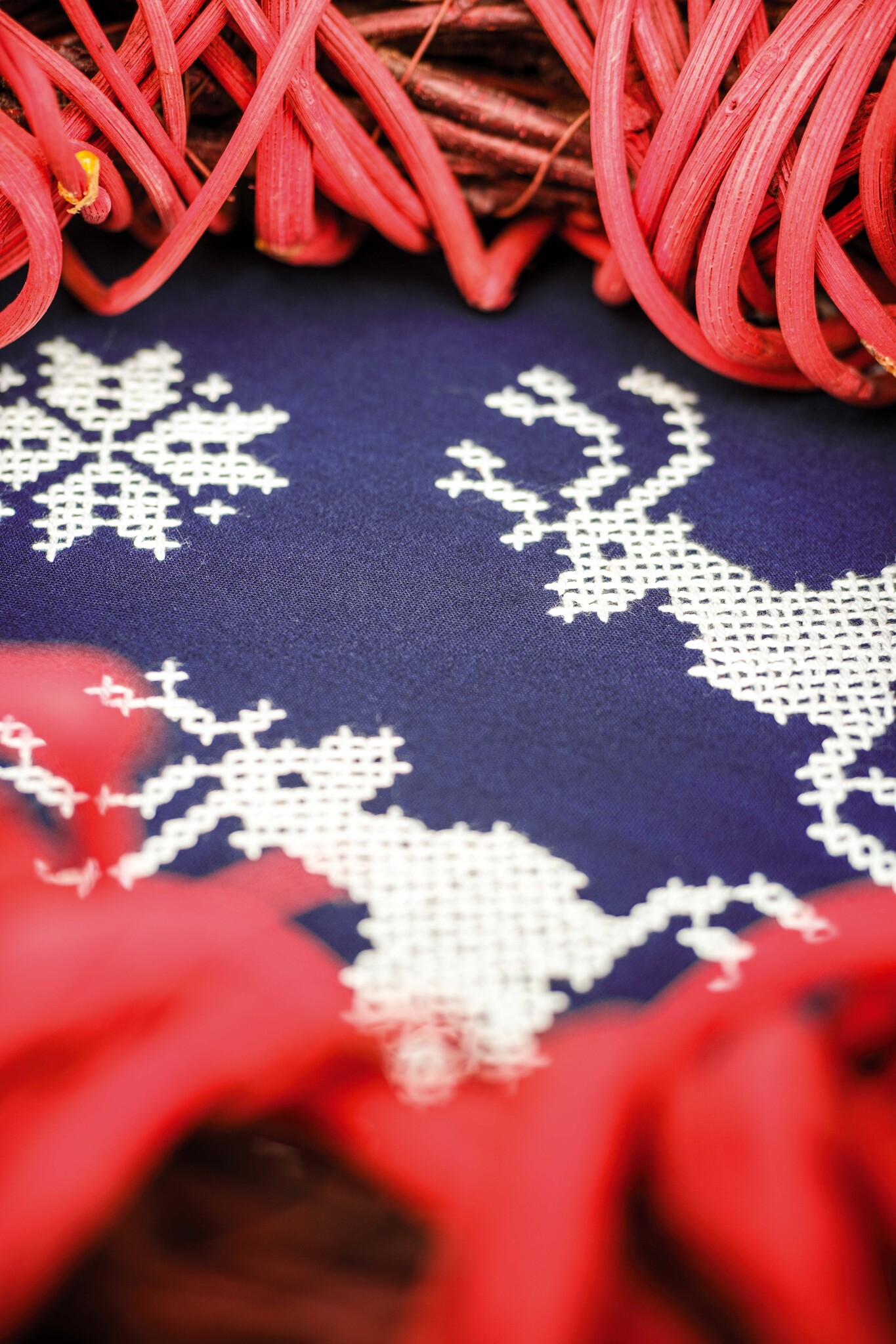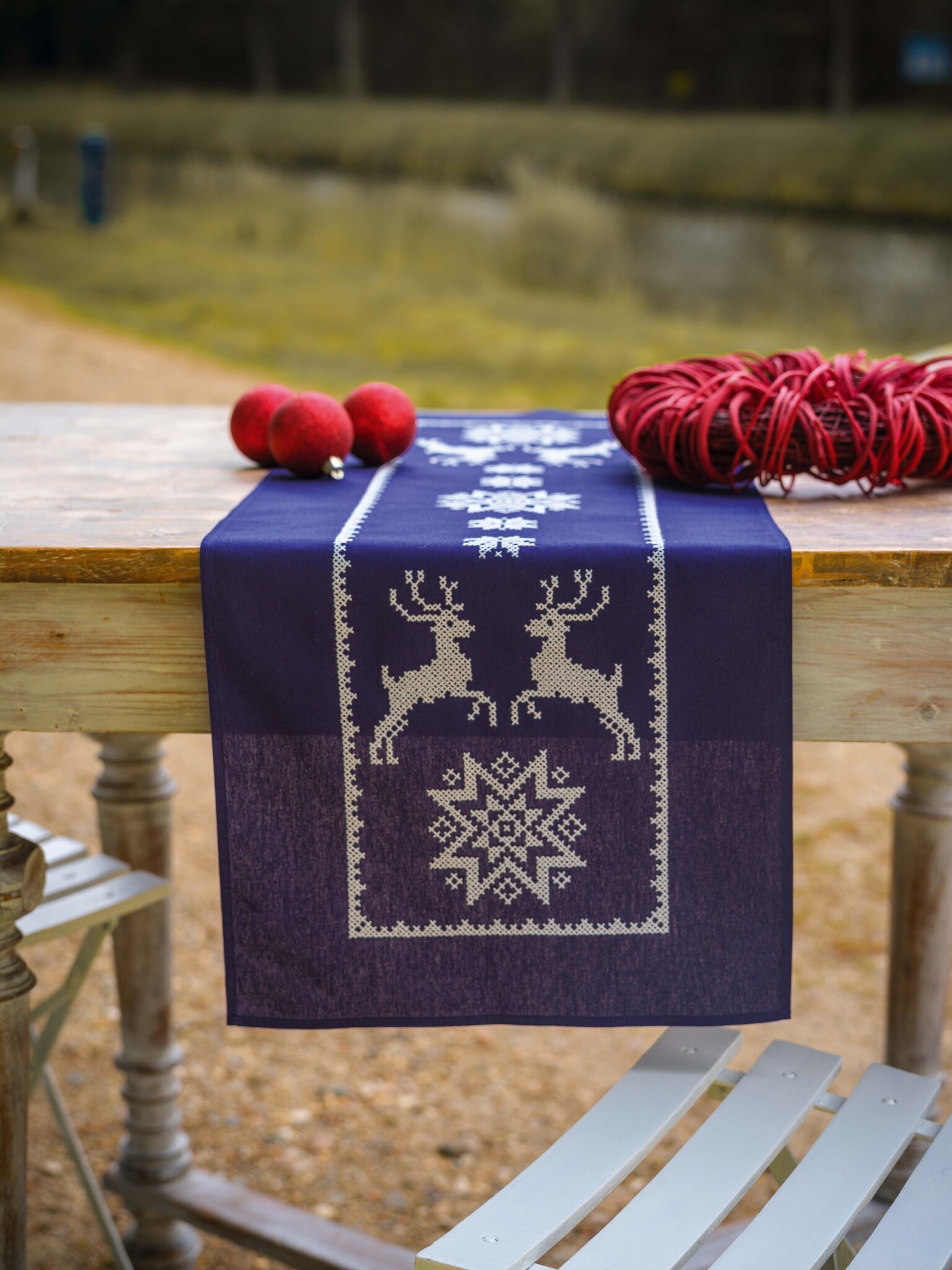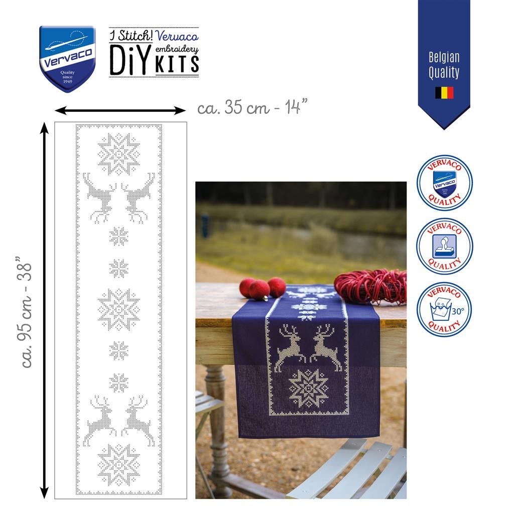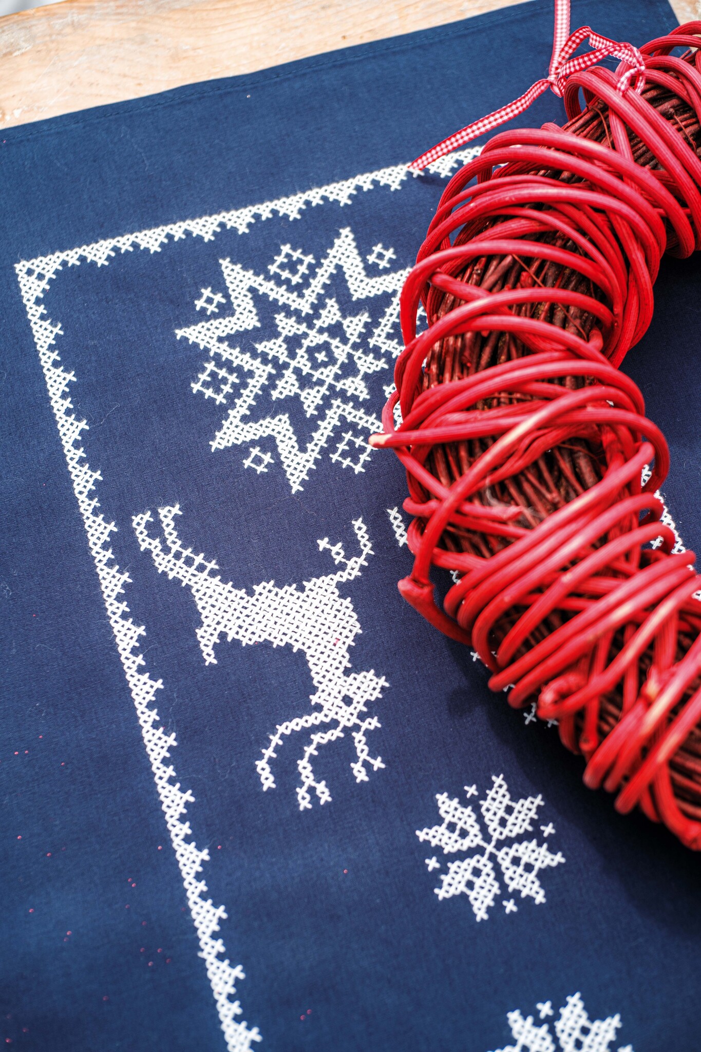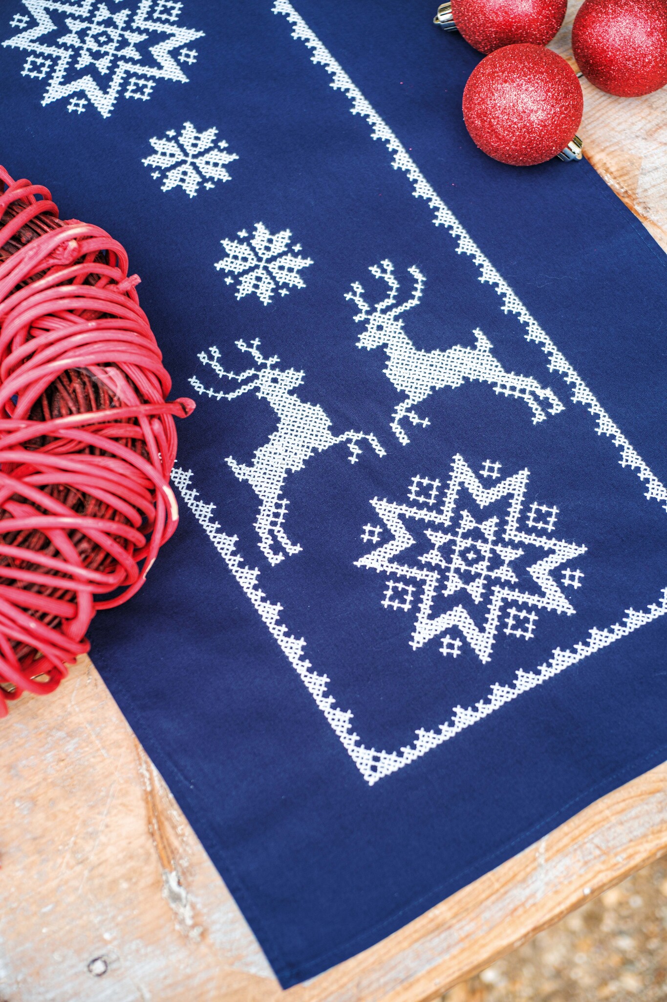 Bedrukte loper met omgezoomde boord, Borduurstof: 100% katoen, Garen: 100% katoen DMC, Garenkaartje, Werkwijze in 8 talen, Vergroot patroon - Naald - Foto, Uitwasbare verf, Geconfectioneerd, ca. 35 x 95 cm / 14" x 38", Leeftijdscategorie: vanaf 15 jaar, Steken: kruissteek, Aantal kleuren: 1, Moeilijkheidsgraad: Gemakkelijk,