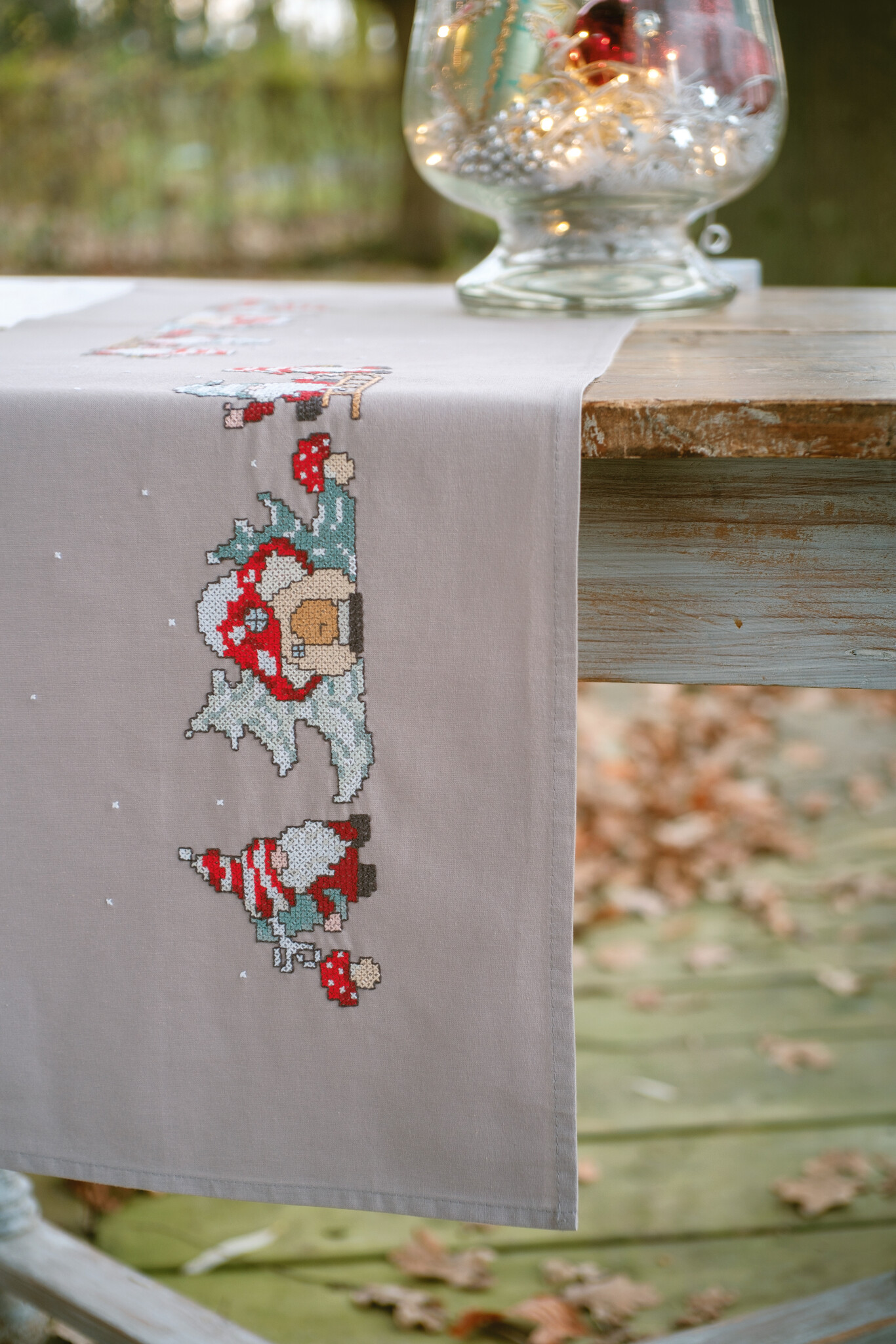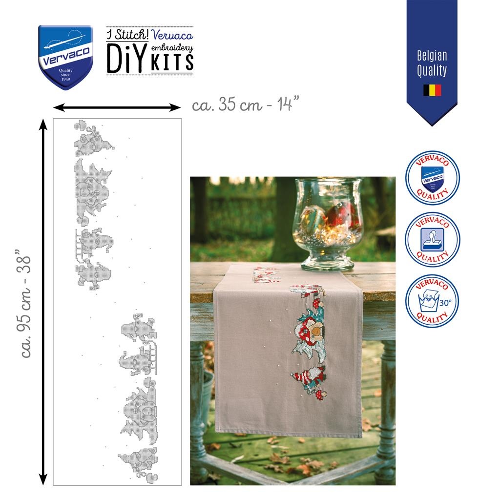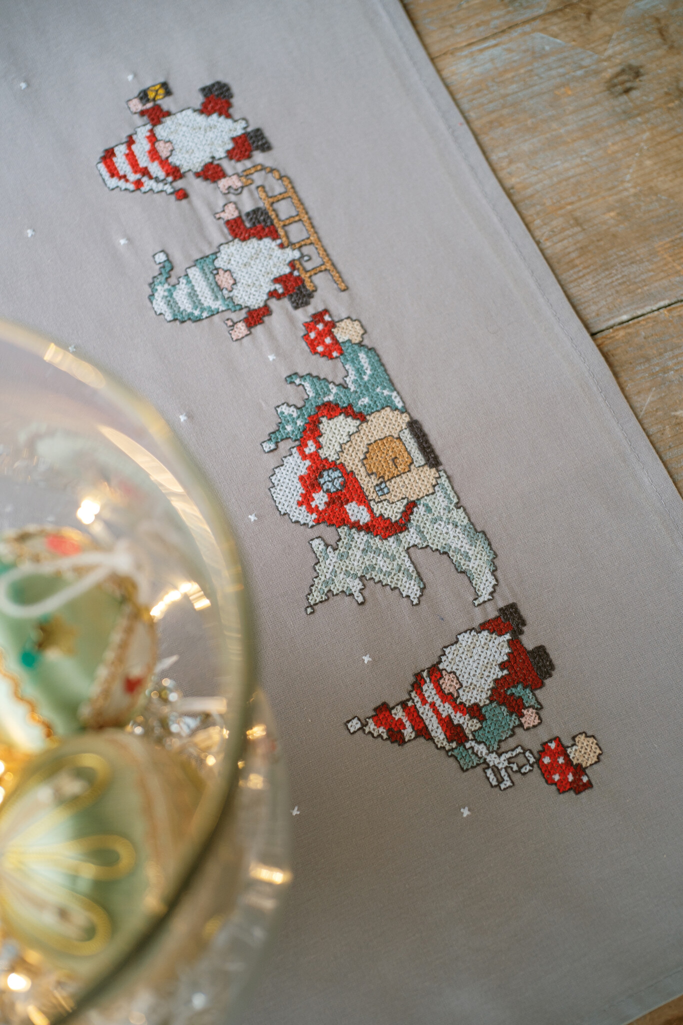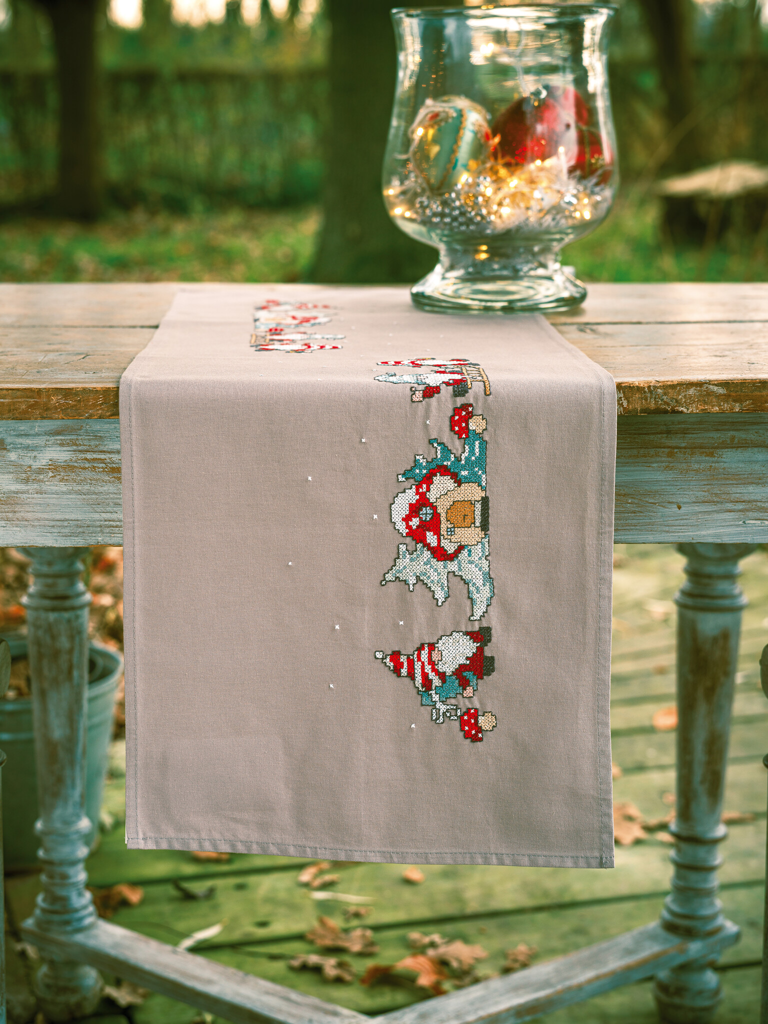 Bedrukte loper met omgezoomde boord, Borduurstof: 100% katoen, Garen: 100% katoen DMC, Garenkaartje, Werkwijze in 8 talen, Vergroot patroon - Naald - Foto, Uitwasbare verf, Geconfectioneerd, ca. 35 x 95 cm / 14" x 38", Leeftijdscategorie: vanaf 15 jaar, Steken: kruissteek, Stiksteek, Aantal kleuren: 14, Moeilijkheidsgraad: Matig gemakkelijk,