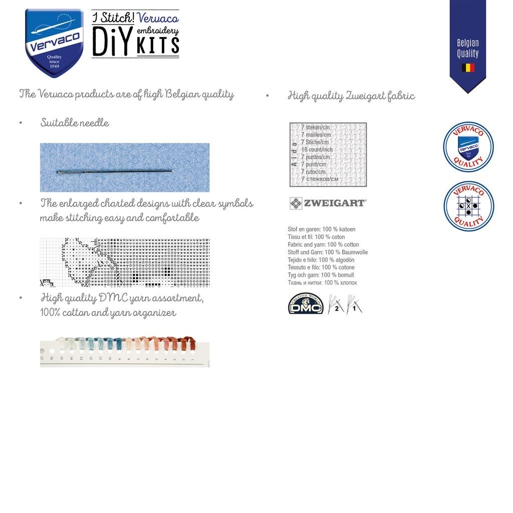 Telpakket met telpatroon, Borduurstof: 100% katoen, Garen: 100% katoen DMC, 7 steken/cm, Garenkaartje, Werkwijze in 8 talen, Vergroot telpatroon, Naald, Foto, ca. 8 x 12 cm / 3.2" x 4.8", Leeftijdscategorie: vanaf 15 jaar, Steken: kruissteek, Stiksteek, Aantal kleuren: 20, Moeilijkheidsgraad: Gemakkelijk,