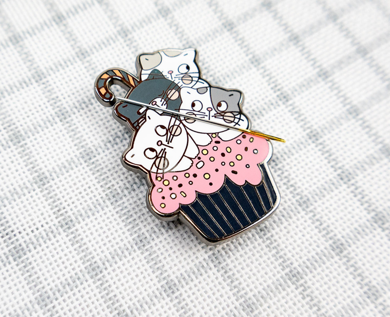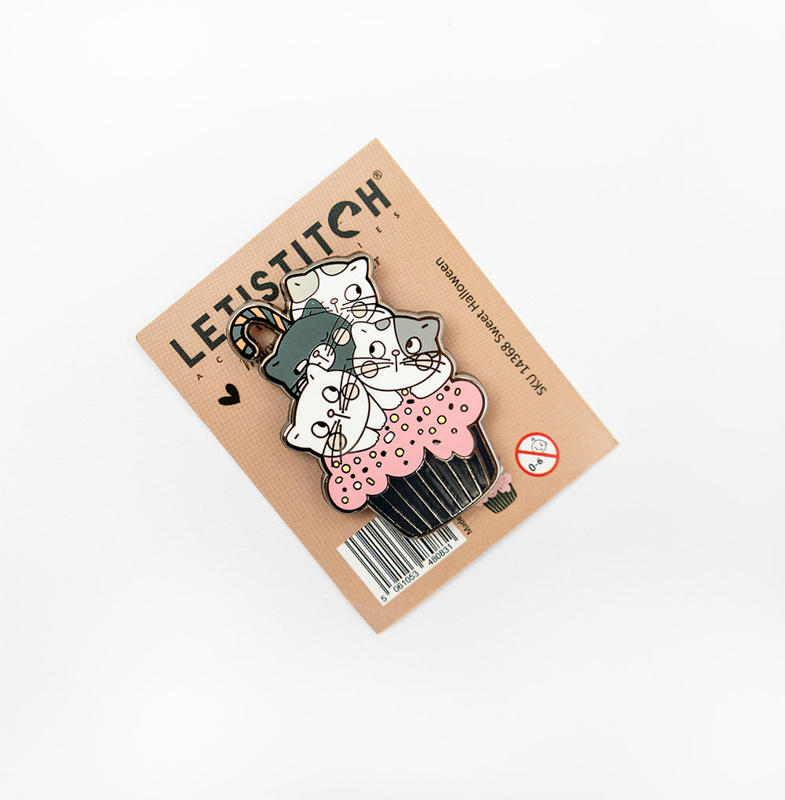 Deze Halloween-accessoire van Leti Stitch, specialist in borduurpakketten, houdt je naald veilig op zijn plek. Met drie schattige katjes op een cupcake in Halloween-thema is dit een vrolijke én functionele must-have voor elke borduur(st)(d)er.