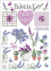 Vouwblad 145 x 210 steken en rand voor een tafelkleed 49 x 249 steken en de lavendel heeft 35 x 70 kruisjes. Kleurenpatroon met 20 kleuren DMC/Anchor. Ook geschikt voor losse patroontjes voor randjes, kaarten, handdoeken etc. Kruissteek en stiksteek. Nede Lees meer