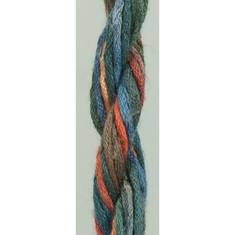 Een 12-draads natuurzijden borduurgaren, welke handmatig in overlopende kleuren zijn geverfd.