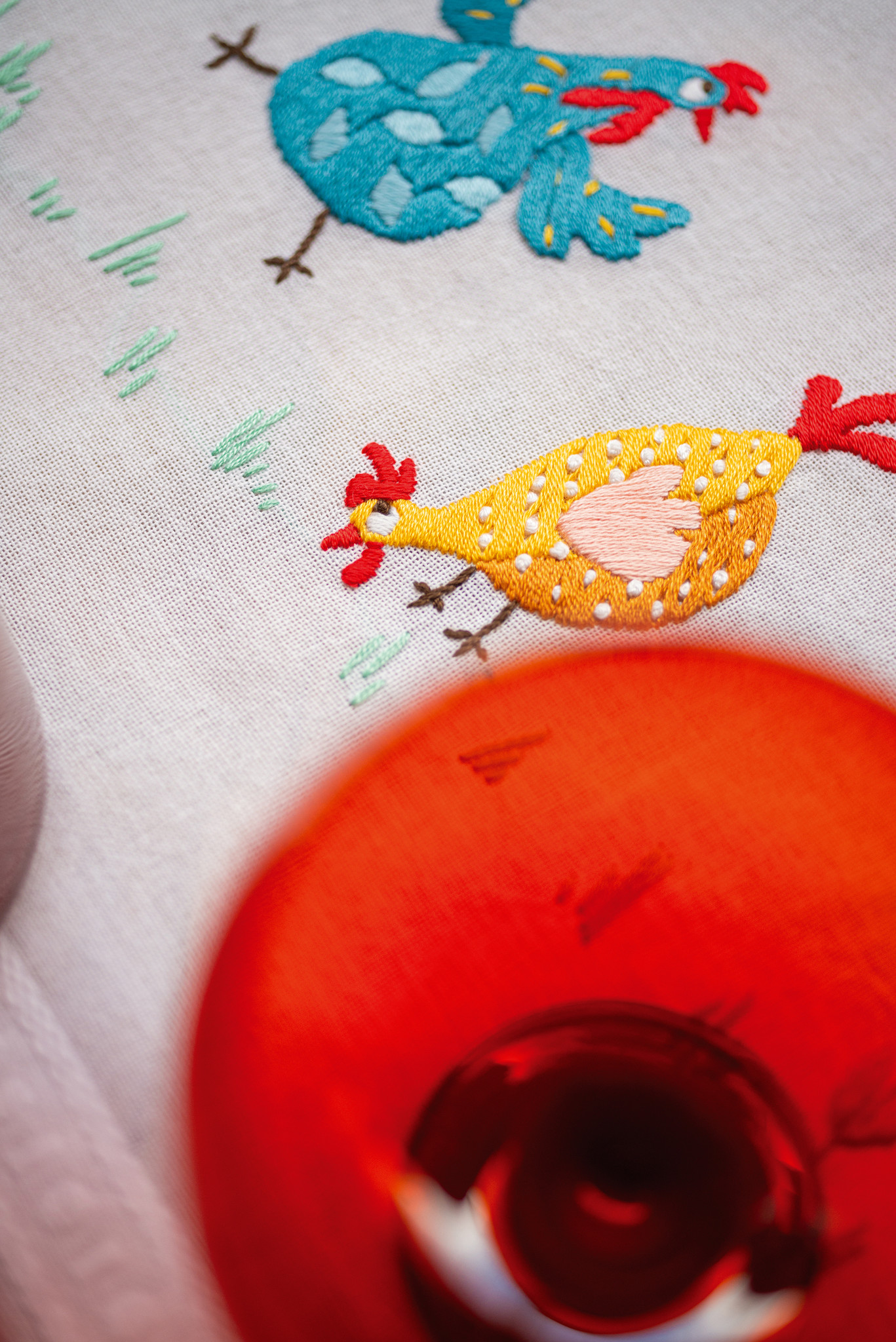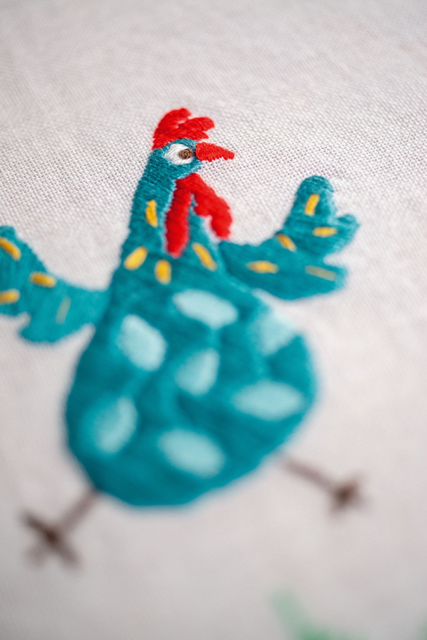 Bedrukt tafelkleed met ingeweven boord, Borduurstof: 100% katoen, Garen: 100% katoen DMC, Garenkaartje, Werkwijze in 8 talen, Vergroot patroon, Naald, Foto, Uitwasbare verf, Geconfectioneerd, ca. 80 x 80 cm / 32" x 32", Leeftijdscategorie: vanaf 15 jaar, Steken: Franse knoop, Platsteek, Spansteek, Steelsteek, Aantal kleuren: 11, Moeilijkheidsgraad: Moeilijk,