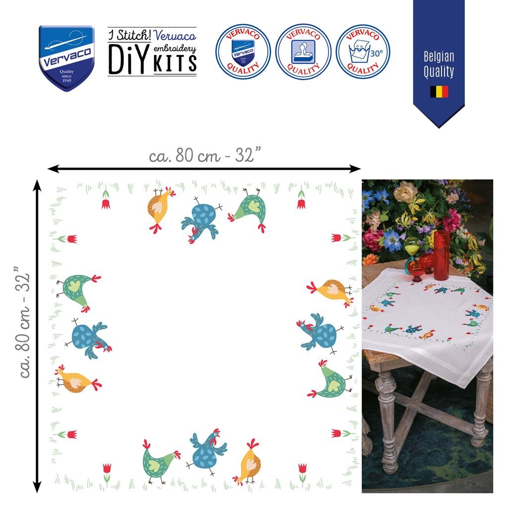 Bedrukt tafelkleed met ingeweven boord, Borduurstof: 100% katoen, Garen: 100% katoen DMC, Garenkaartje, Werkwijze in 8 talen, Vergroot patroon, Naald, Foto, Uitwasbare verf, Geconfectioneerd, ca. 80 x 80 cm / 32" x 32", Leeftijdscategorie: vanaf 15 jaar, Lees meer