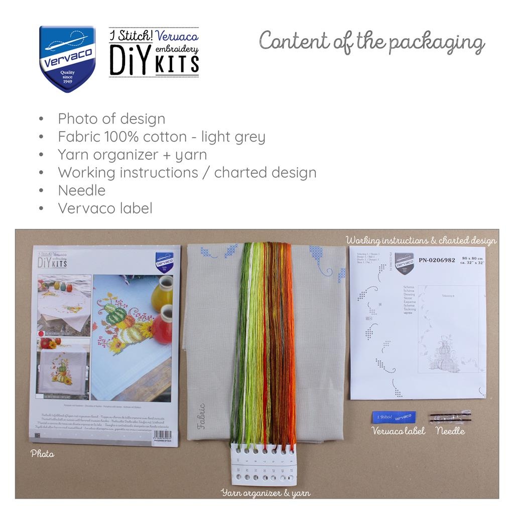 | Omschrijving | Tafelkleed kit Pompoen met bladeren |