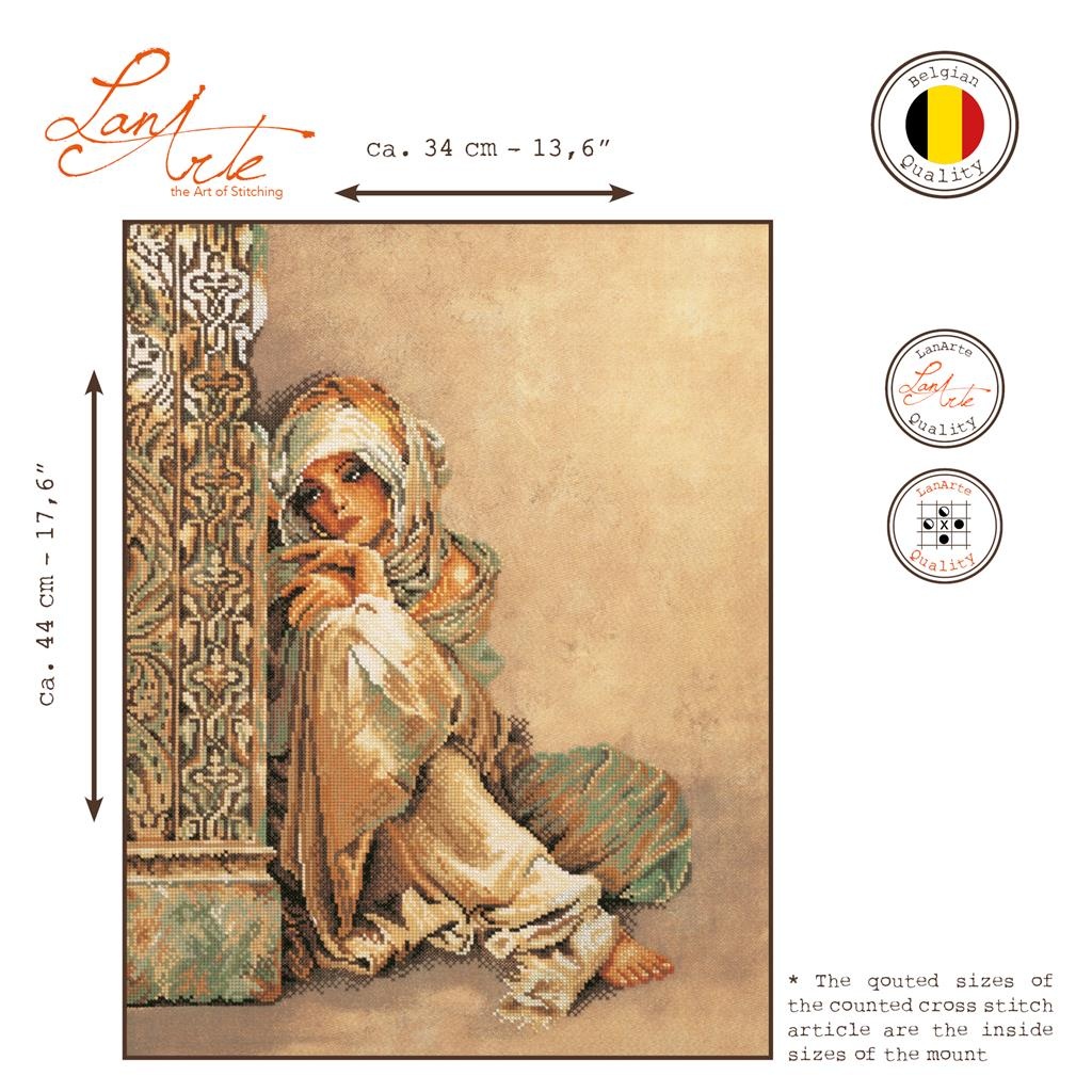 Telpakket met telpatroon, Borduurstof: 100% katoen, Garen: 100% katoen DMC, 10,5 draden (5,2 steken)/cm, Garenkaartje, Werkwijze in 8 talen, Vergroot telpatroon, Naald, Foto, ca. 34 x 44 cm / 13.6" x 17.6", Leeftijdscategorie: vanaf 18 jaar, Steken: kruissteek, Aantal kleuren: 35, Moeilijkheidsgraad: Gemakkelijk,