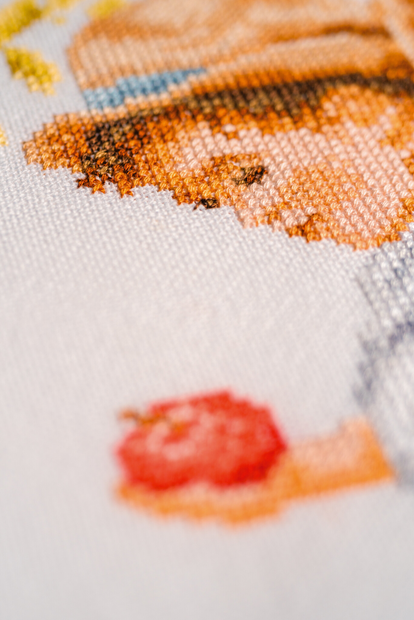 Telpakket met telpatroon, Borduurstof: 100% katoen, Garen: 100% katoen DMC, Telstof 10,5 draden (5,2 steken)/cm, Garenkaartje, Werkwijze in 8 talen, Vergroot telpatroon, Naald, Foto, ca. 20 x 30 cm / 8" x 12", Leeftijdscategorie: vanaf 18 jaar, Steken: kruissteek, Spansteek, Aantal kleuren: 27, Moeilijkheidsgraad: Gemakkelijk,