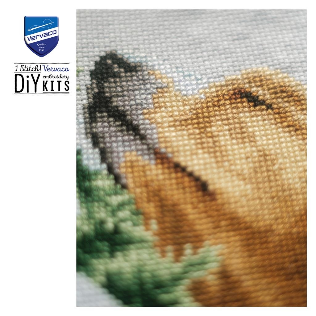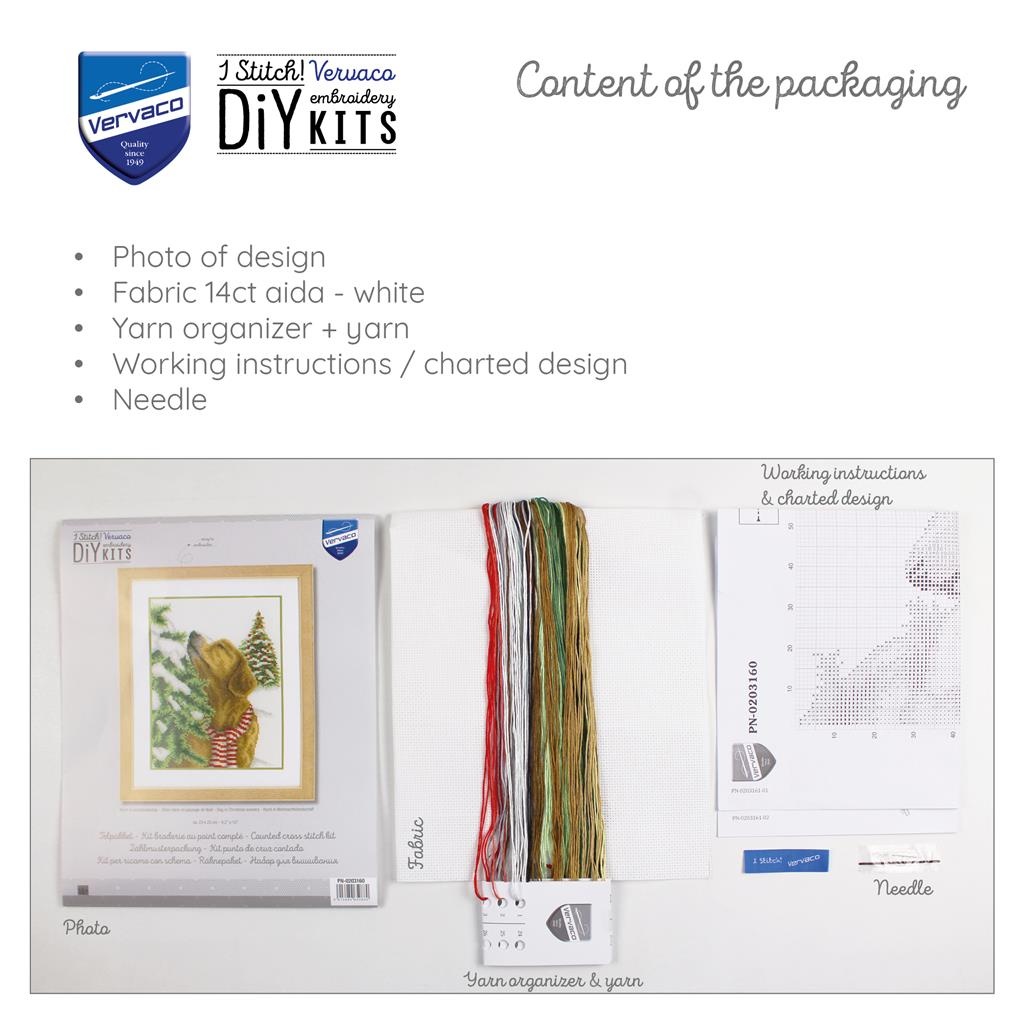 Telpakket met telpatroon, Borduurstof: 100% katoen, Garen: 100% katoen DMC, Aida 5,4 steken/cm, Garenkaartje, Werkwijze in 8 talen, Vergroot telpatroon, Naald, Foto, ca. 23 x 25 cm / 9.2" x 10", Leeftijdscategorie: vanaf 18 jaar, Steken: kruissteek, Aantal kleuren: 21, Moeilijkheidsgraad: Gemakkelijk,
