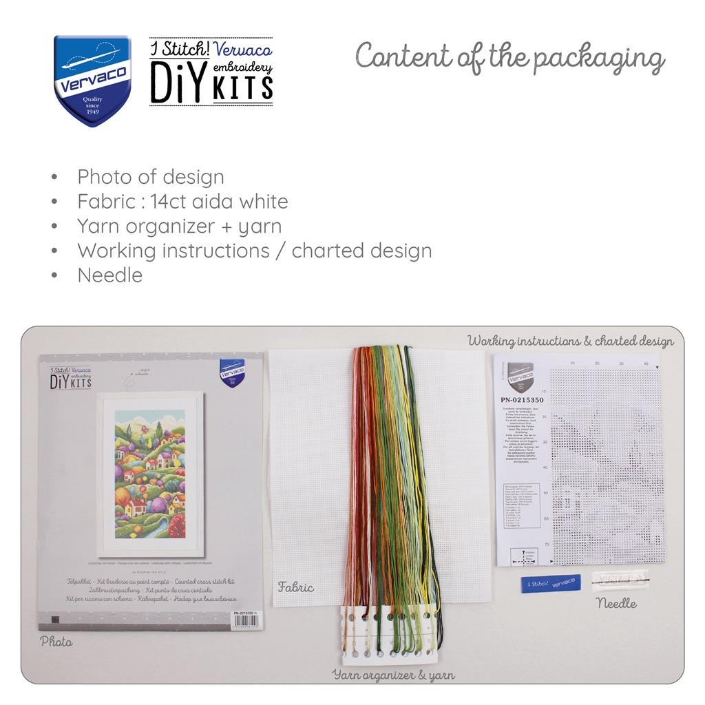 Telpakket met telpatroon, Borduurstof: 100% katoen, Garen: 100% katoen DMC, Aida 5,4 steken/cm, Garenkaartje, Werkwijze in 8 talen, Vergroot telpatroon, Naald, Foto, ca. 16 x 28 cm / 6.4" x 11.2", Leeftijdscategorie: vanaf 18 jaar, Steken: kruissteek, Sti Lees meer