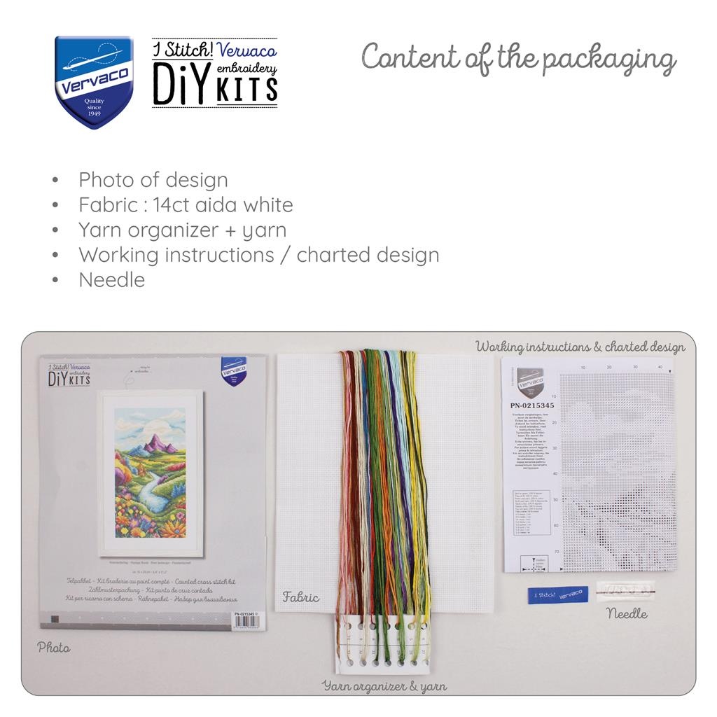 Telpakket met telpatroon, Borduurstof: 100% katoen, Garen: 100% katoen DMC, Aida 5,4 steken/cm, Garenkaartje, Werkwijze in 8 talen, Vergroot telpatroon, Naald, Foto, ca. 16 x 28 cm / 6.4" x 11.2", Leeftijdscategorie: vanaf 18 jaar, Steken: kruissteek, Sti Lees meer